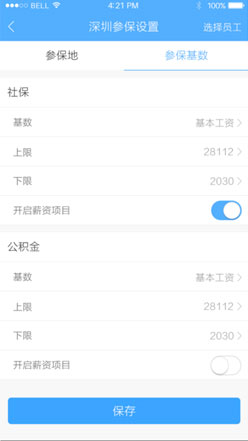 内置国内多个城市社保数据,可高效管理参保地;支持设置最低、社平工资和参保基数
